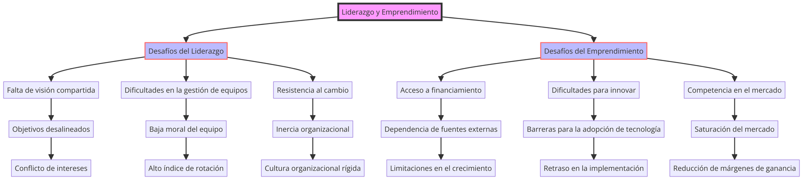| Desafíos Comunes | Manejo de la diversidad de personalidades, motivación del equipo, mantenimiento de la visión a largo plazo, gestión del cambio. | Obtención de financiamiento, enfrentamiento de la incertidumbre del mercado, gestión de crecimiento sostenible, adaptación a cambios tecnológicos y de mercado. |