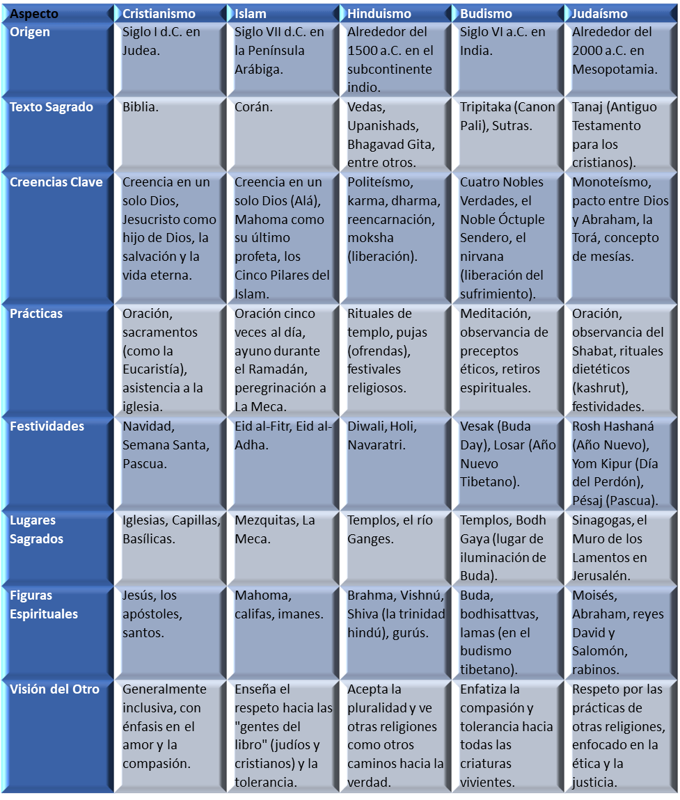 - ¿Qué religiones conoces y qué sabes sobre sus principales enseñanzas?