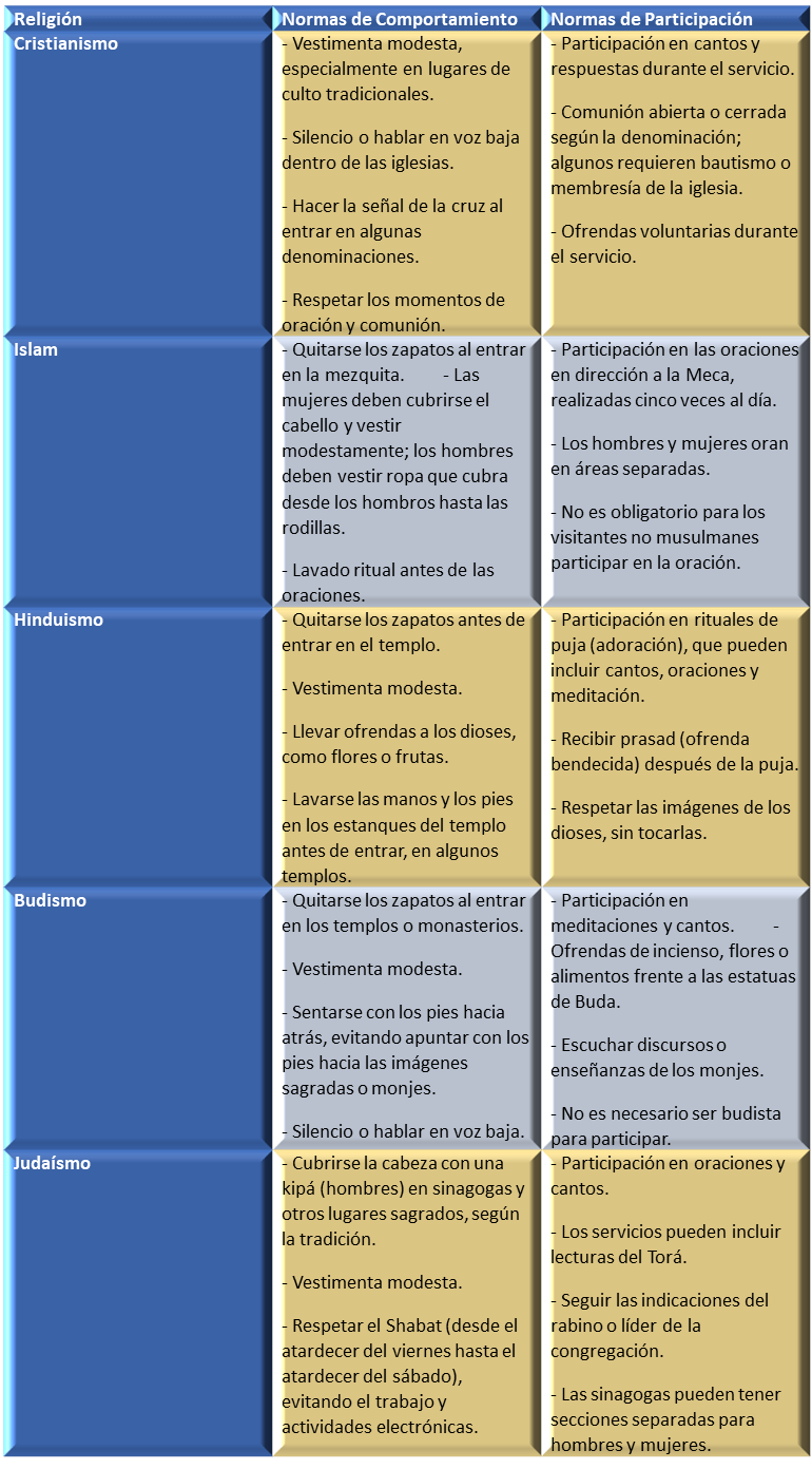 Respeto y Valoración de las Celebraciones Litúrgicas en Diferentes Tradiciones Religiosas